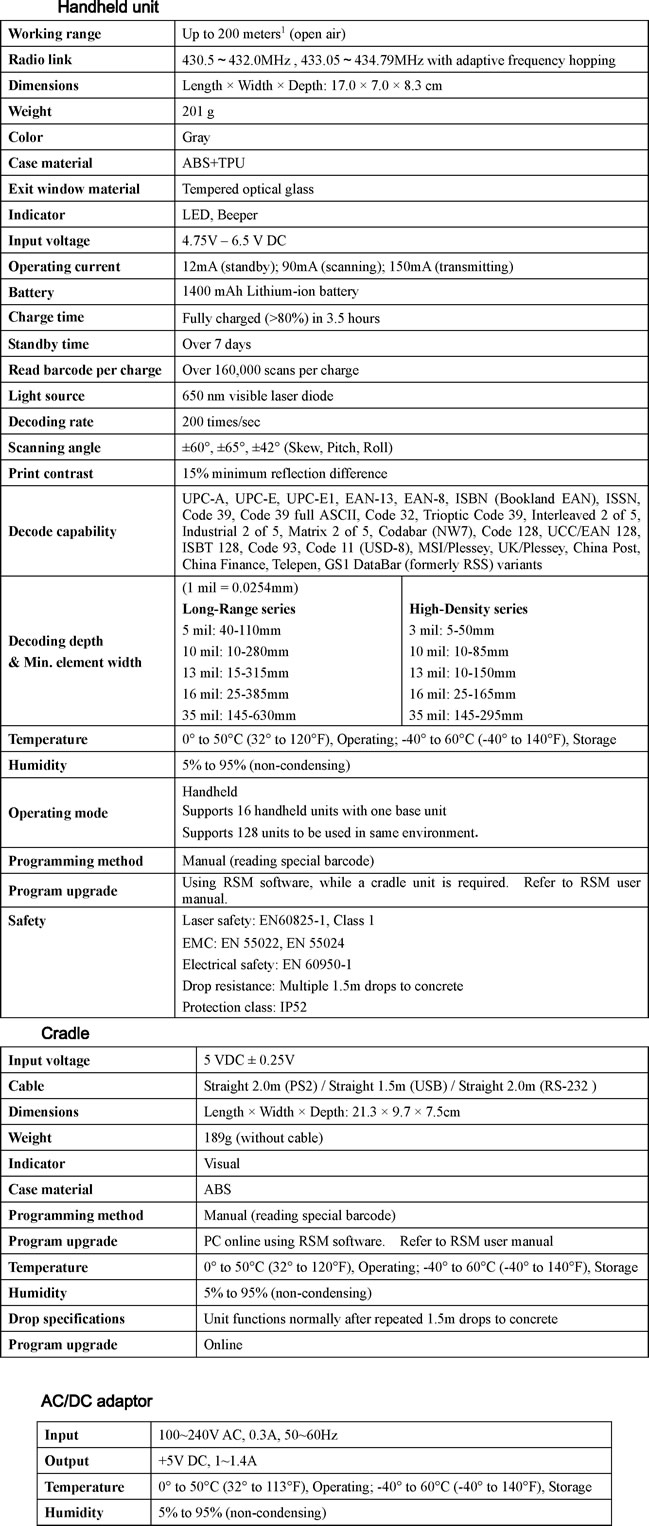 -1300mAh Li+ battery: up to 16,000 scans per charge